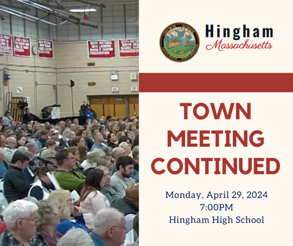 Town Meeting TONIGHT! Monday, April 29, 2024 at Hingham High School starting at 7PM.